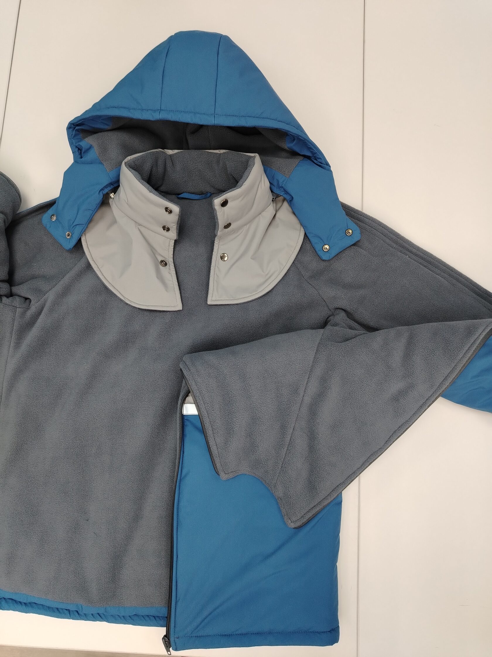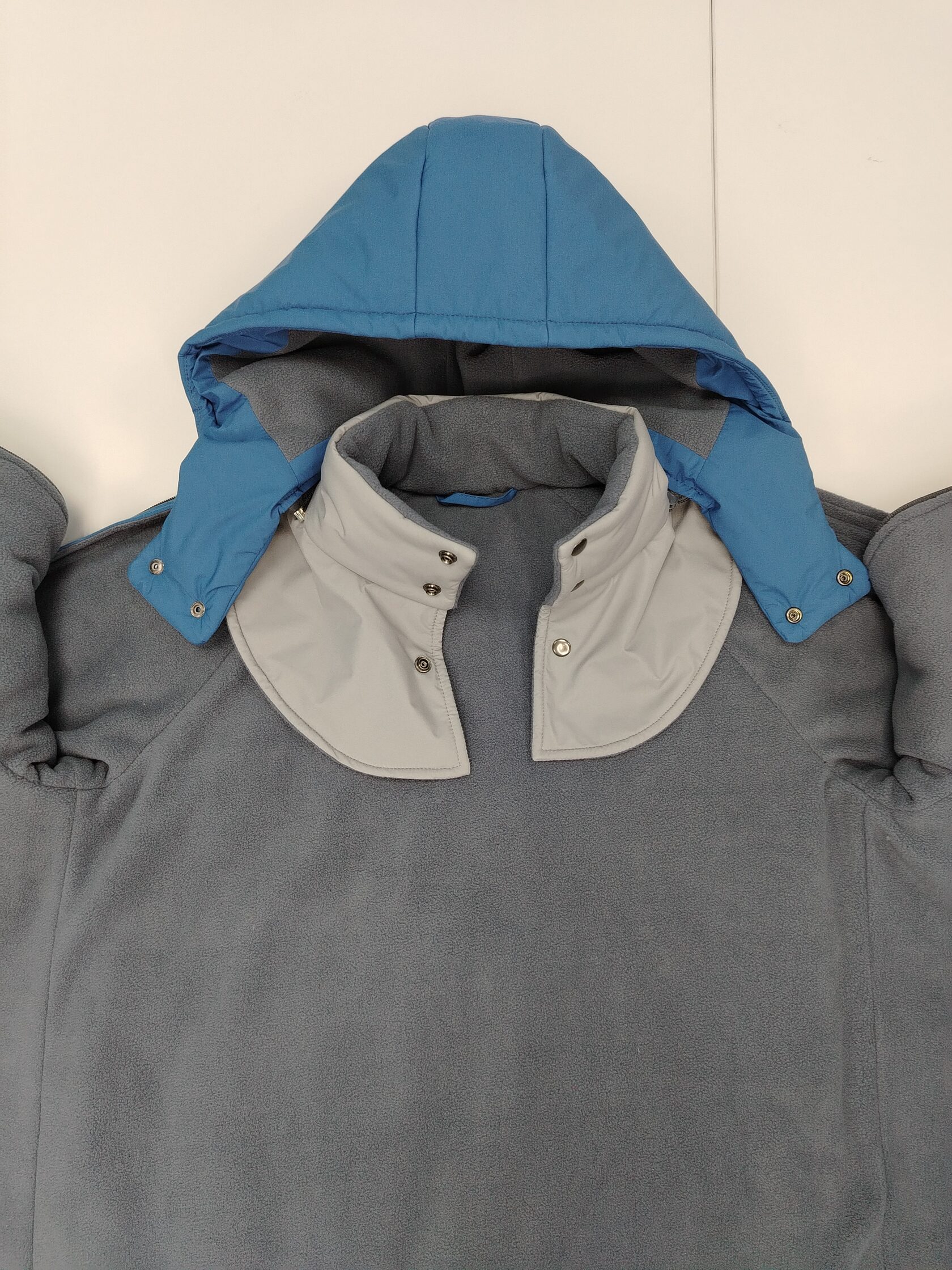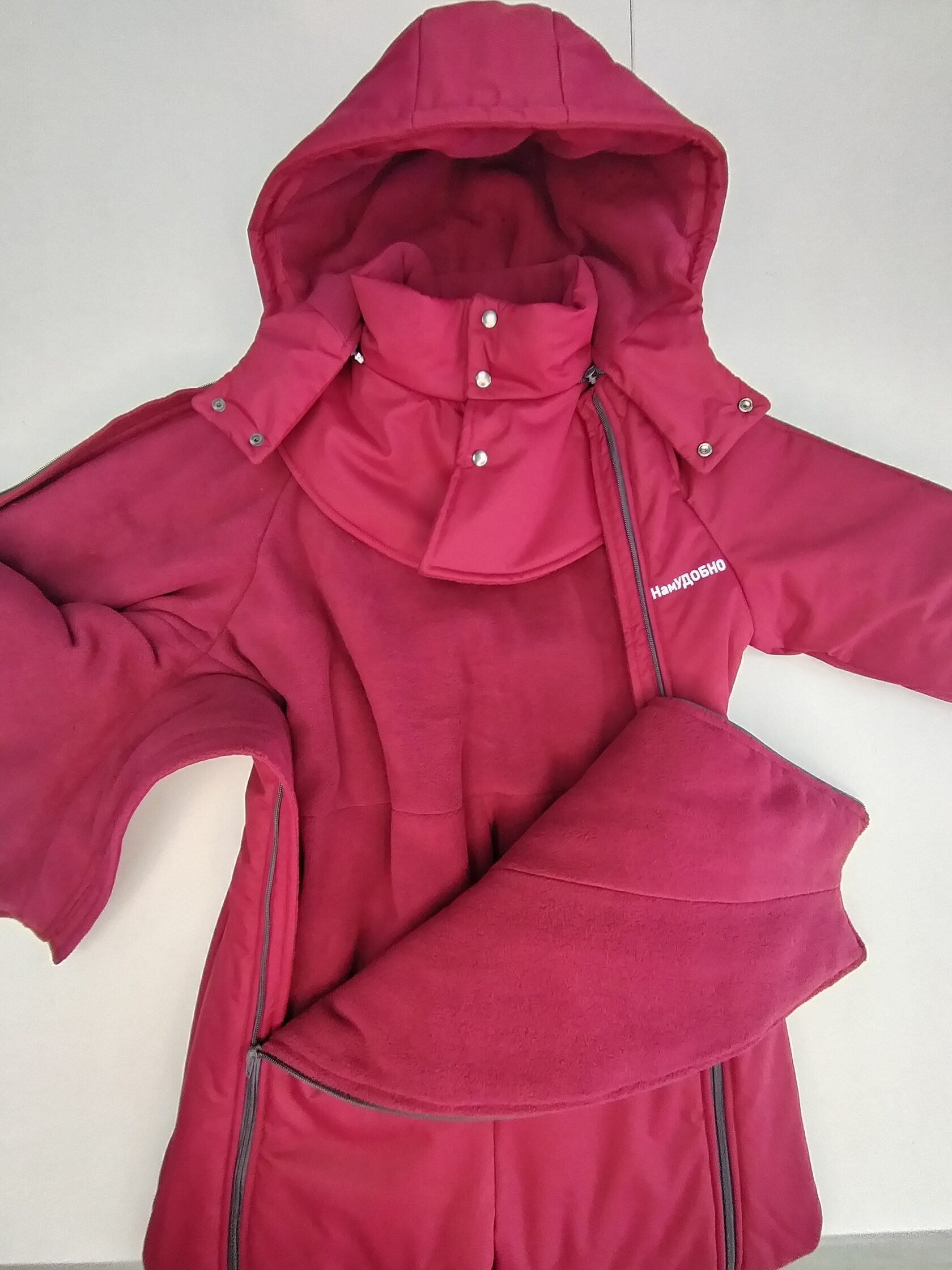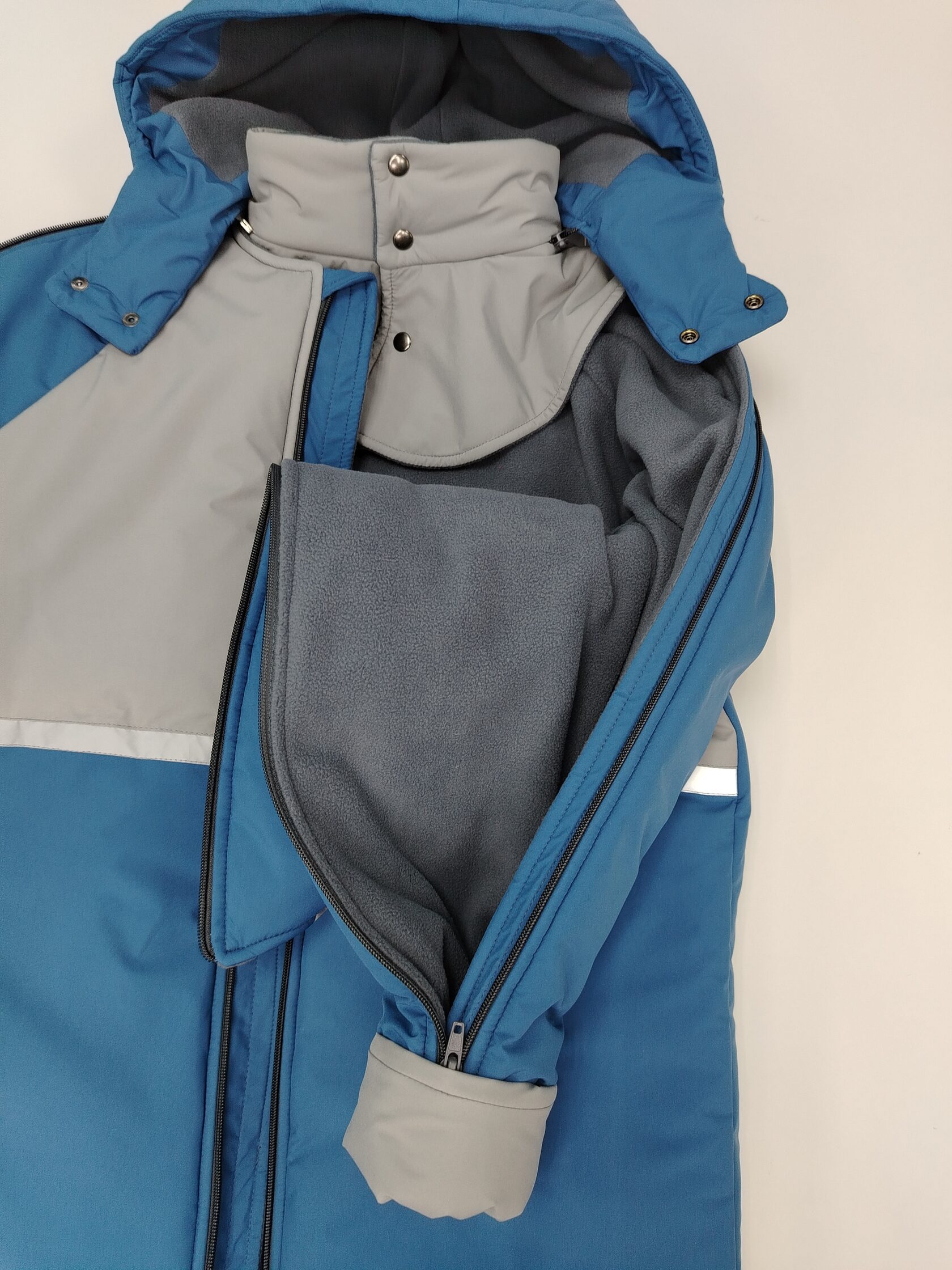 Рукава с углубленной проймой для облегчения одевания при большой спастики в руках. Молнии по рукавам до манжета или полностью распашные. Зона шеи и плеч прикрывается манишкой. Капюшон фиксируется на молнию или может быть не съёмным. Все эти элементы обеспечивают больший комфорт и функциональность в процессе носки. Период использования – весна, осень. Материал верха – Мембрана Материал подкладки 1 вариант – поливискоза (вискоза 50%, полиэстер 50%) Материал подкладки 2 вариант – флис (полиэстер 100%) Материал утеплителя – Альполюкс (95% полиэстер 5% шерсть) плотность зависит от сезонного назначения 100гр/пм (0+10°С), 200гр/пм (-10-0°С)