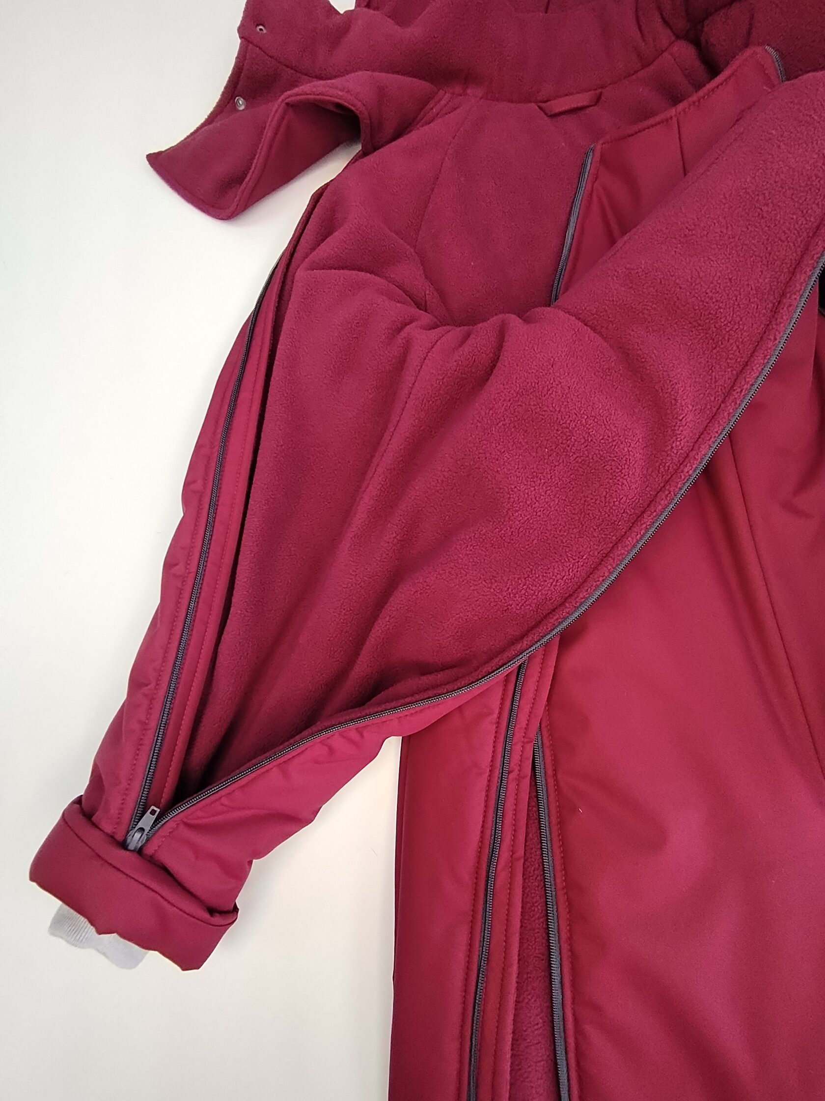 Рукава с углубленной проймой для облегчения одевания при большой спастики в руках. Молнии по рукавам до манжета или полностью распашные. Зона шеи и плеч прикрывается манишкой. Капюшон фиксируется на молнию или может быть не съёмным. Все эти элементы обеспечивают больший комфорт и функциональность в процессе носки. Период использования – весна, осень, зима. Материал верха – Мембрана Материал подкладки 1 вариант – поливискоза (вискоза 50%, полиэстер 50%) Материал подкладки 2 вариант – флис (полиэстер 100%) Материал утеплителя – Альполюкс (95% полиэстер 5% шерсть) плотность зависит от сезонного назначения.